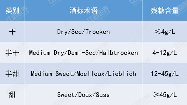 靜止葡萄酒根據(jù)含糖量的分類