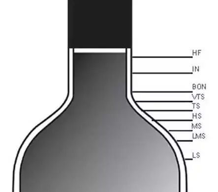 多指剛出廠時(shí)候的水位,一些新酒和陳年時(shí)間不長的葡萄酒的液面大都在這個(gè)位置。