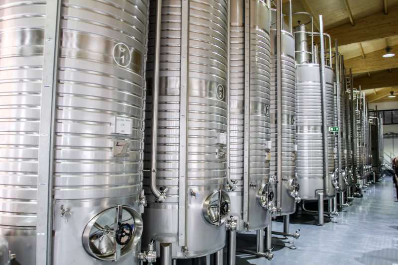白葡萄酒的發(fā)酵溫度比紅葡萄酒要低,一般維持在12-22℃之間,較低的發(fā)酵溫度可以減緩發(fā)酵過程,有利于產(chǎn)生更多微妙的風味。而發(fā)酵一般在幾周內(nèi)可以完成,發(fā)酵容器可選擇橡木桶、不銹鋼罐和其他惰性容器。如霞多麗(Chardonnay)等可從橡木桶發(fā)酵獲益的葡萄品種,一般會在小橡木桶中發(fā)酵,而像長相思(Sauvignon Blanc)和雷司令(Riesling)這類芳香型白葡萄品種則會在不銹鋼罐中進行發(fā)酵,以保留純凈的果味。