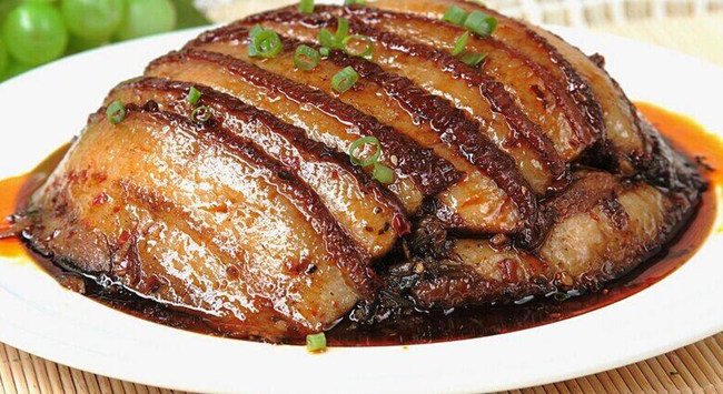 做法:東坡肉的來歷在此不再贅述,但是不得不提的是蘇東坡所作的詩《燉肉歌》,他自己也贊美這東坡肉:“慢著火、少著水,柴火罨焰煙不起,待它自熟莫催它,火候足時它自美。”東坡肉選用三分白七分瘦的上等五花肉,加入大蔥、生姜、八角、冰糖、生抽、紹興黃酒等經(jīng)砂鍋慢燉而成。旺火煮沸,小火燜酥,肉酥爛而形不變,油潤不膩,入口香糯,帶有淡淡的酒香,百吃不厭!