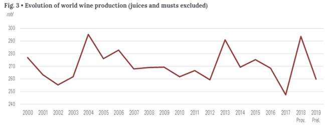 總體而言,在連續兩年被定義為極度動蕩之后,2019年使全球葡萄酒產量回到平均水平。