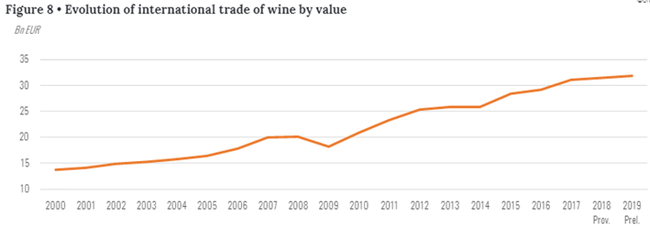 (2000—2019葡萄酒國際貿易價值的演變)