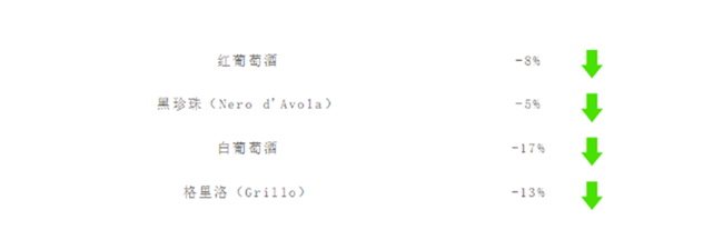 相較2018年,各葡萄品種增長如下,由此可以看出,黑珍珠(Nero d'Avola)、格里洛(Grillo)等代表的本土品種大放異彩,已經(jīng)成為西西里葡萄酒的嶄新名片。