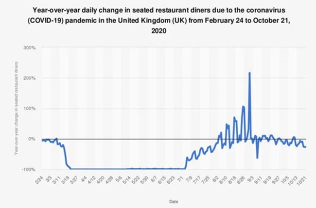 雖然8月期間英國政府推出“半價用餐“政策來拉動消費,但好景不長,第二波疫情再一次使酒吧和餐廳行業陷入危機。