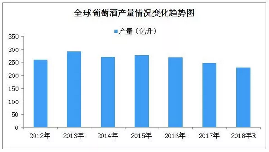 近日,中商產業研究院發布了一份《2018-2023年全球葡萄酒市場發展前景及投資機會研究報告》,報告顯示,預計2018年全球產量將繼續下滑,約為230億升。