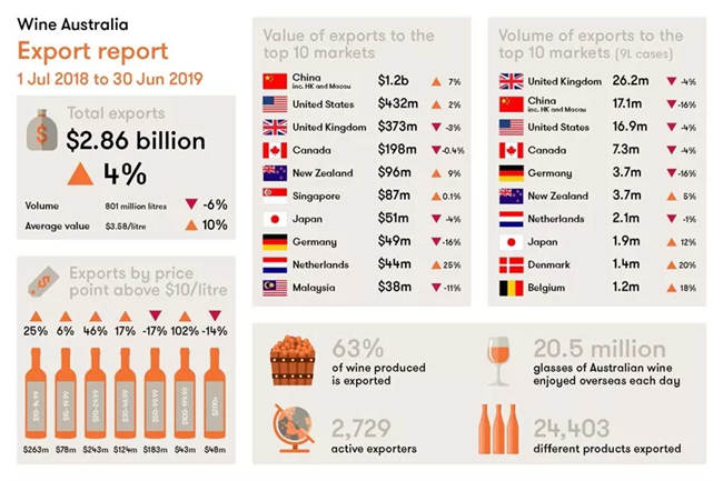 根據(jù)澳大利亞葡萄酒管理局(Wine Australia)公布的數(shù)據(jù),2019年前5個月,澳大利亞出口中國大陸的葡萄酒總價值首次超越法國,成為中國進口葡萄酒的第一大來源國。