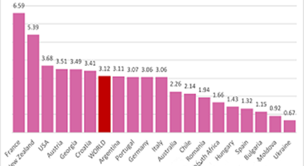 • 美國葡萄酒經濟學家協會(AAWE)近日公布了一份葡萄酒出口的數據,報告顯示,格魯吉亞在2014 -2016年,出口1升葡萄酒的平均價格為3,49美元,位居世界第五,其中第一位為法國。 AAWE - 美國葡萄酒經濟學家協會是一個享有聲望的組織,根據他們的評級,法國排名第...
