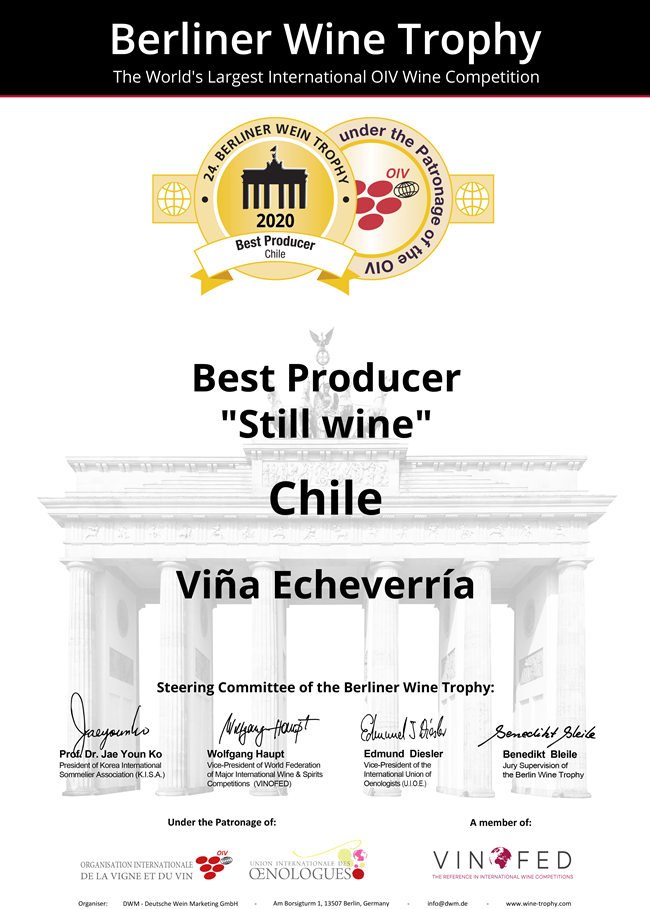 (2020柏林葡萄酒大獎(jiǎng)賽-智利最佳生產(chǎn)商 榮譽(yù)證書)