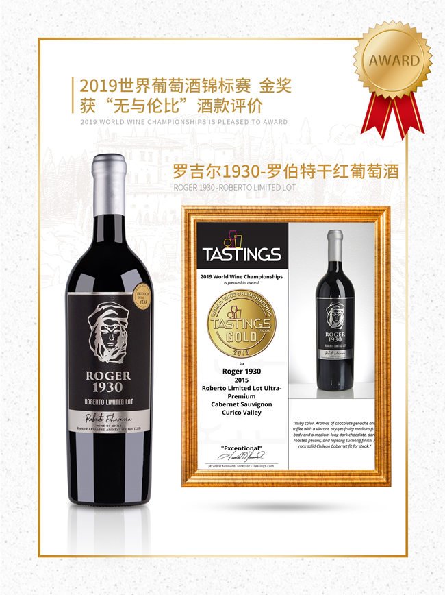 羅吉爾1930-羅伯特紅葡萄酒呈深邃的寶石紅色;酒香非常柔和,伴有精致的黑加侖,黑李子的果香以及甘草、煙熏的香氣;口感優(yōu)雅豐富,層次鮮明且多變,單寧強(qiáng)勁,令人十分愉悅。在榮獲2020柏林葡萄酒大獎(jiǎng)賽金獎(jiǎng)的榮譽(yù)之前,就已經(jīng)獲得了2019世界葡萄酒錦標(biāo)賽金獎(jiǎng)的榮譽(yù),以及“無與倫比”酒款評(píng)價(jià)!